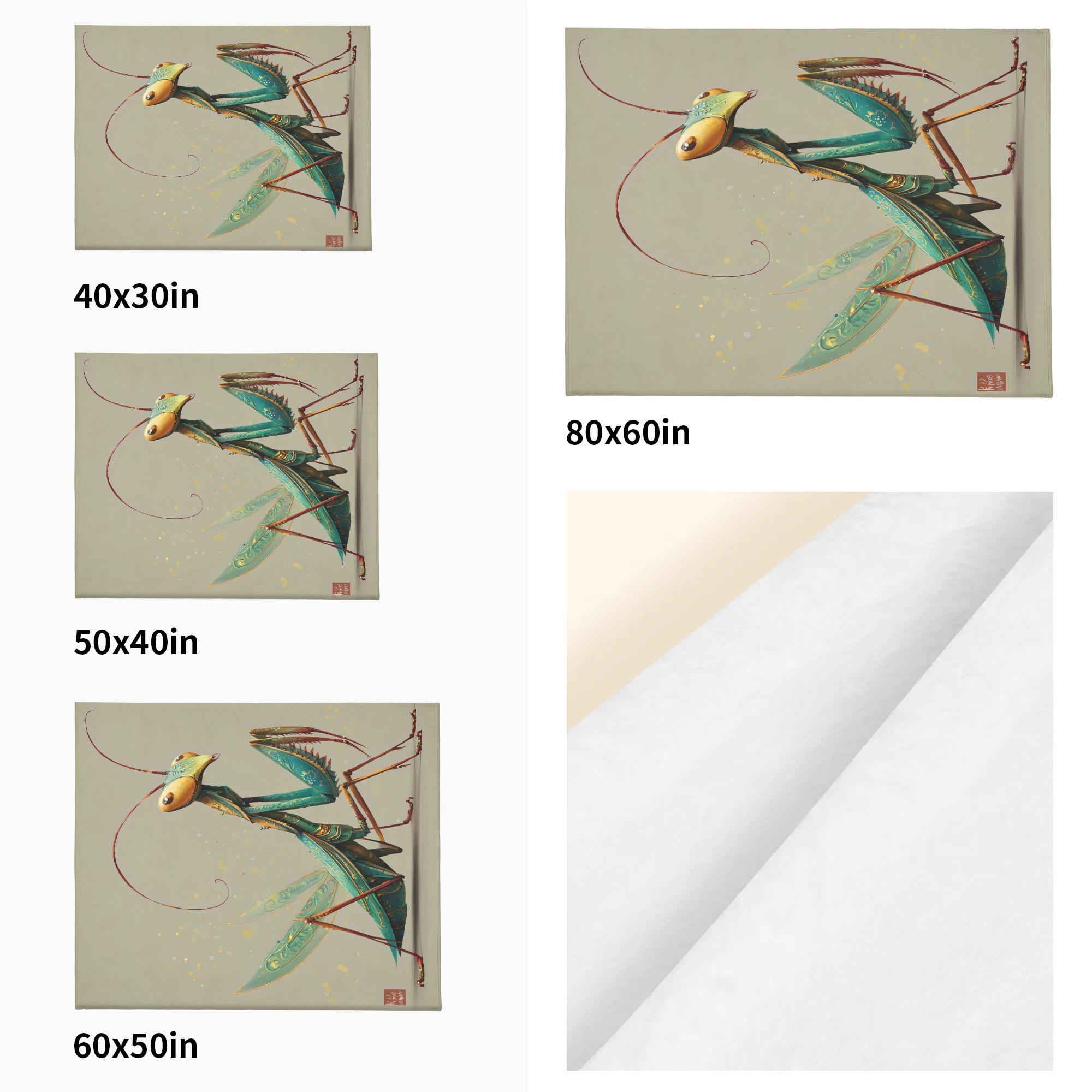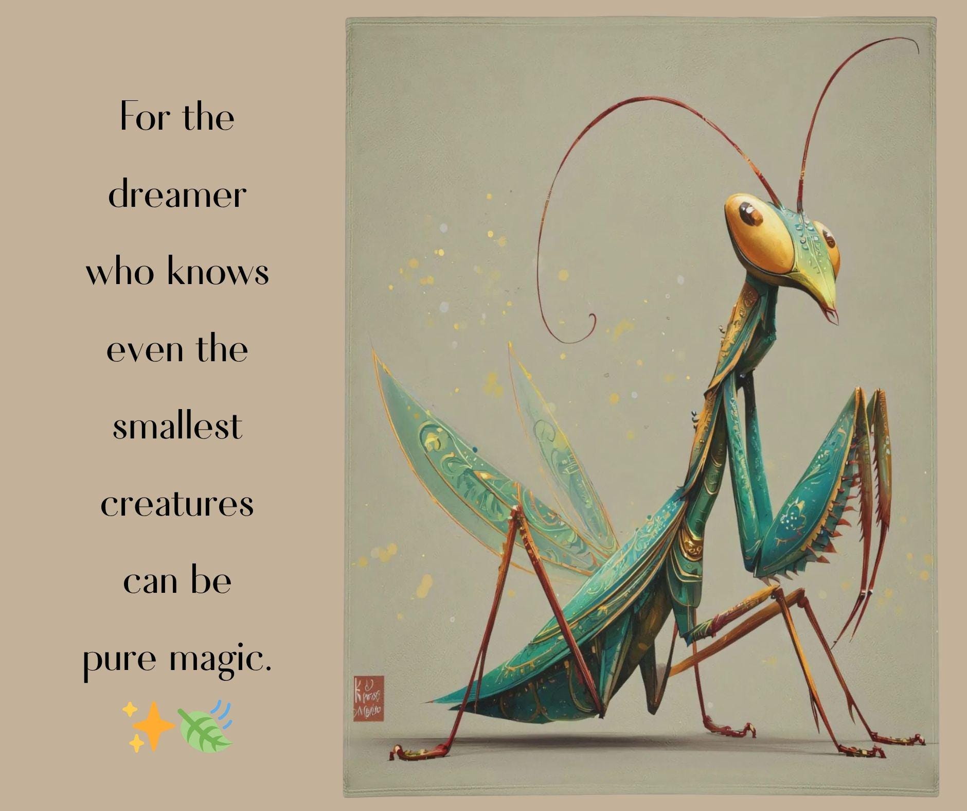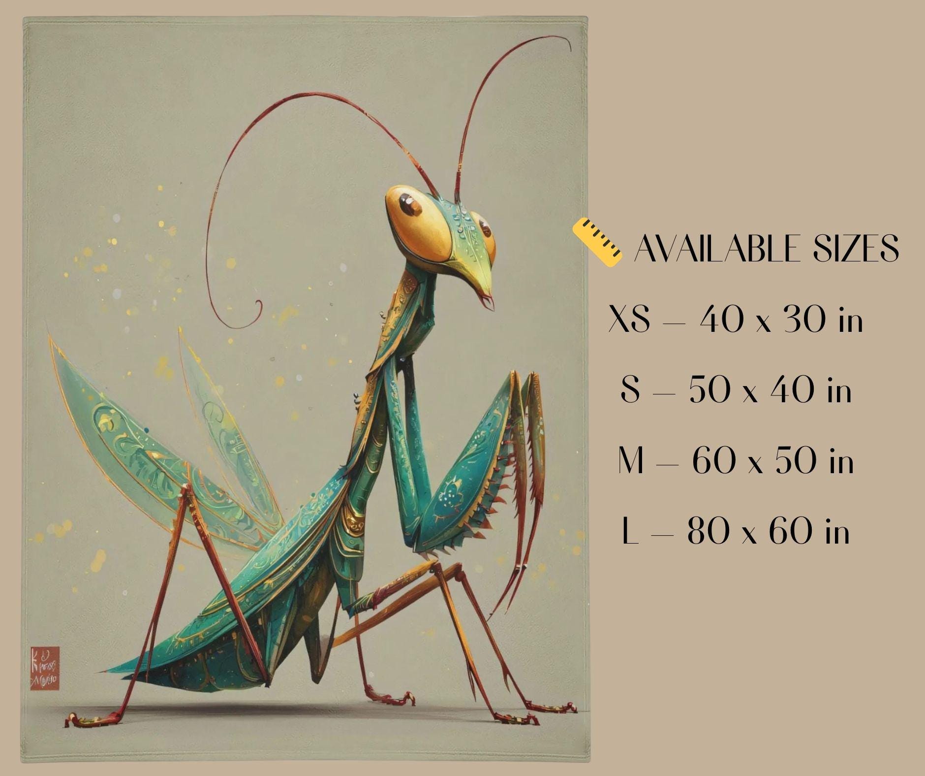 Wrap yourself in art that feels alive. ✨ This stunning fleece throw blanket features a teal-and-gold praying mantis illustrated with exquisite detail, set against a warm neutral backdrop sprinkled with glowing accents. It’s whimsical, elegant, and irresistibly unique — the perfect statement piece for cozy nights, creative spaces, and nature-inspired homes.