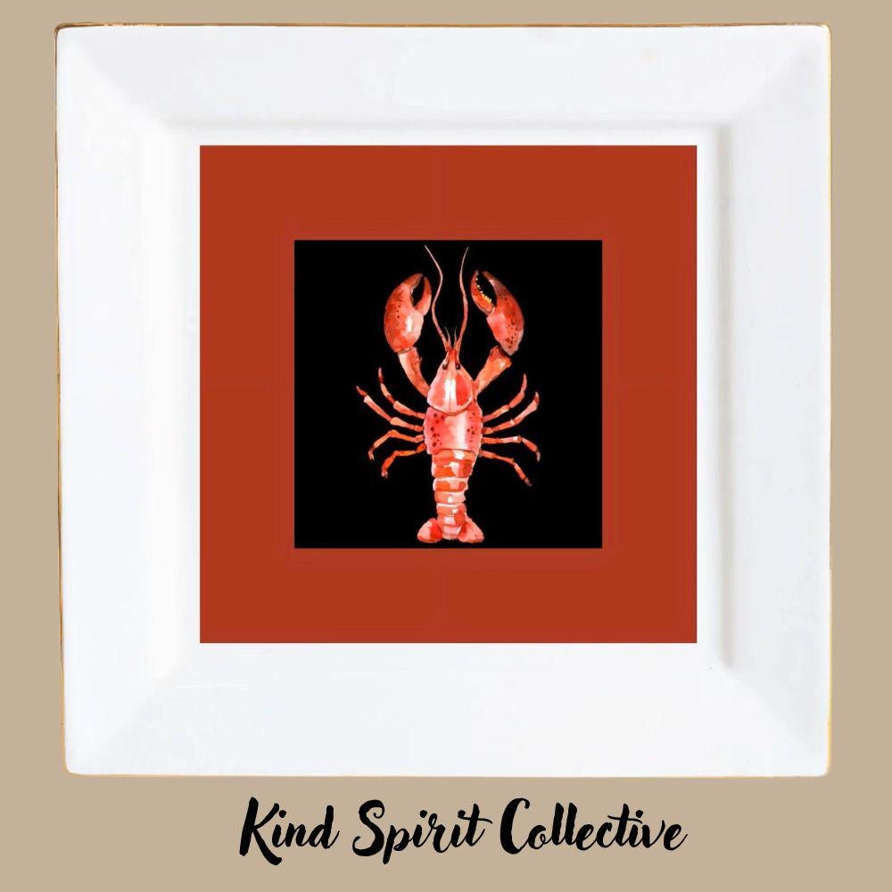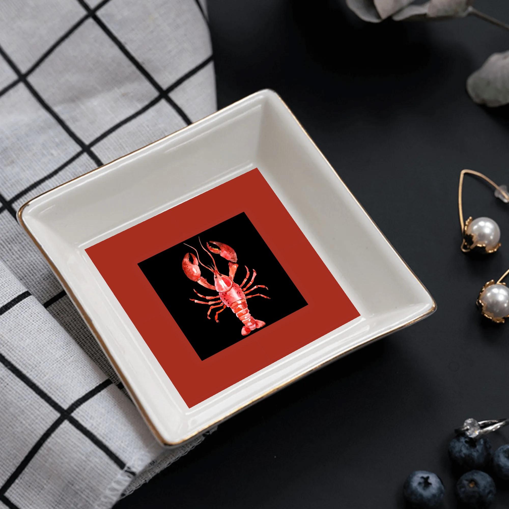 Eye-catching lobster artwork on a modern square ceramic plate