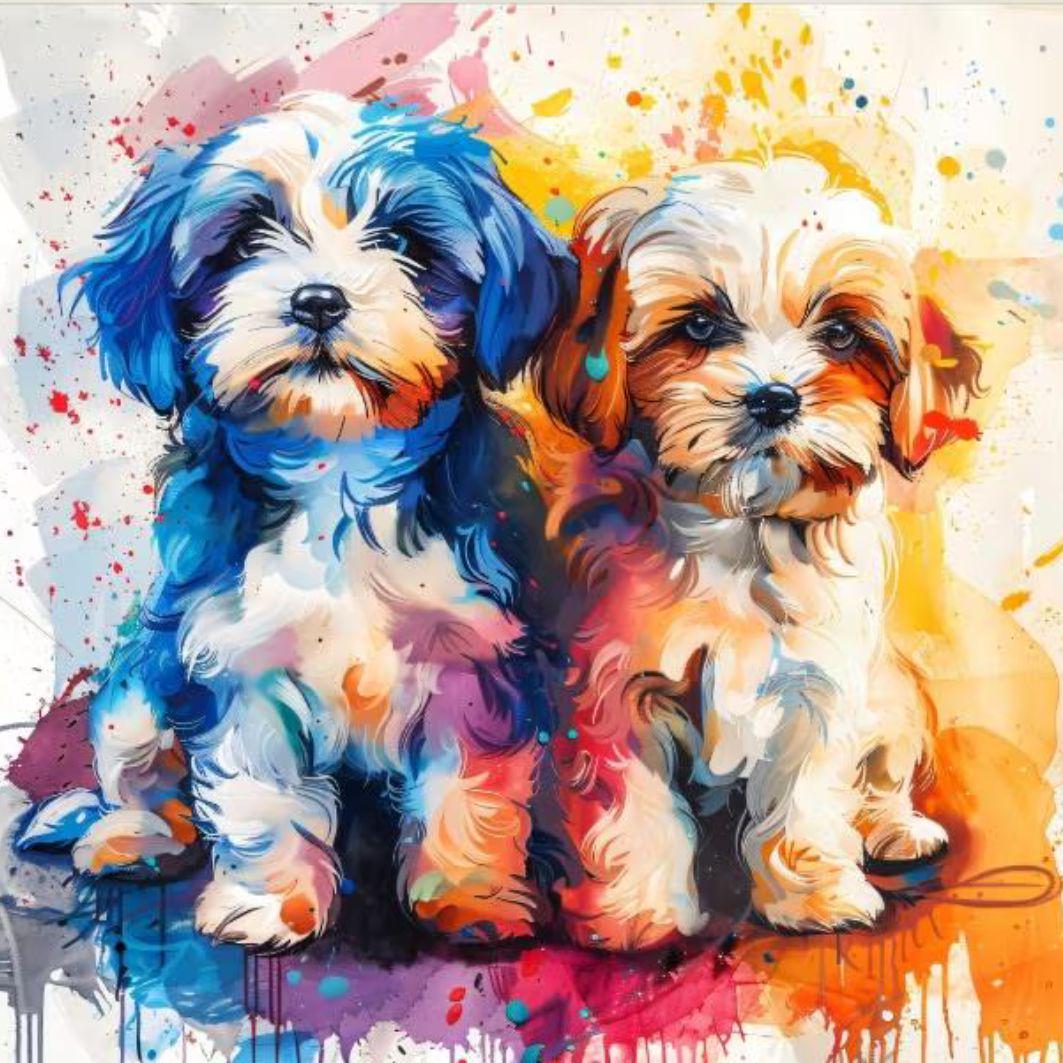 Bright, expressive puppy artwork that turns heads