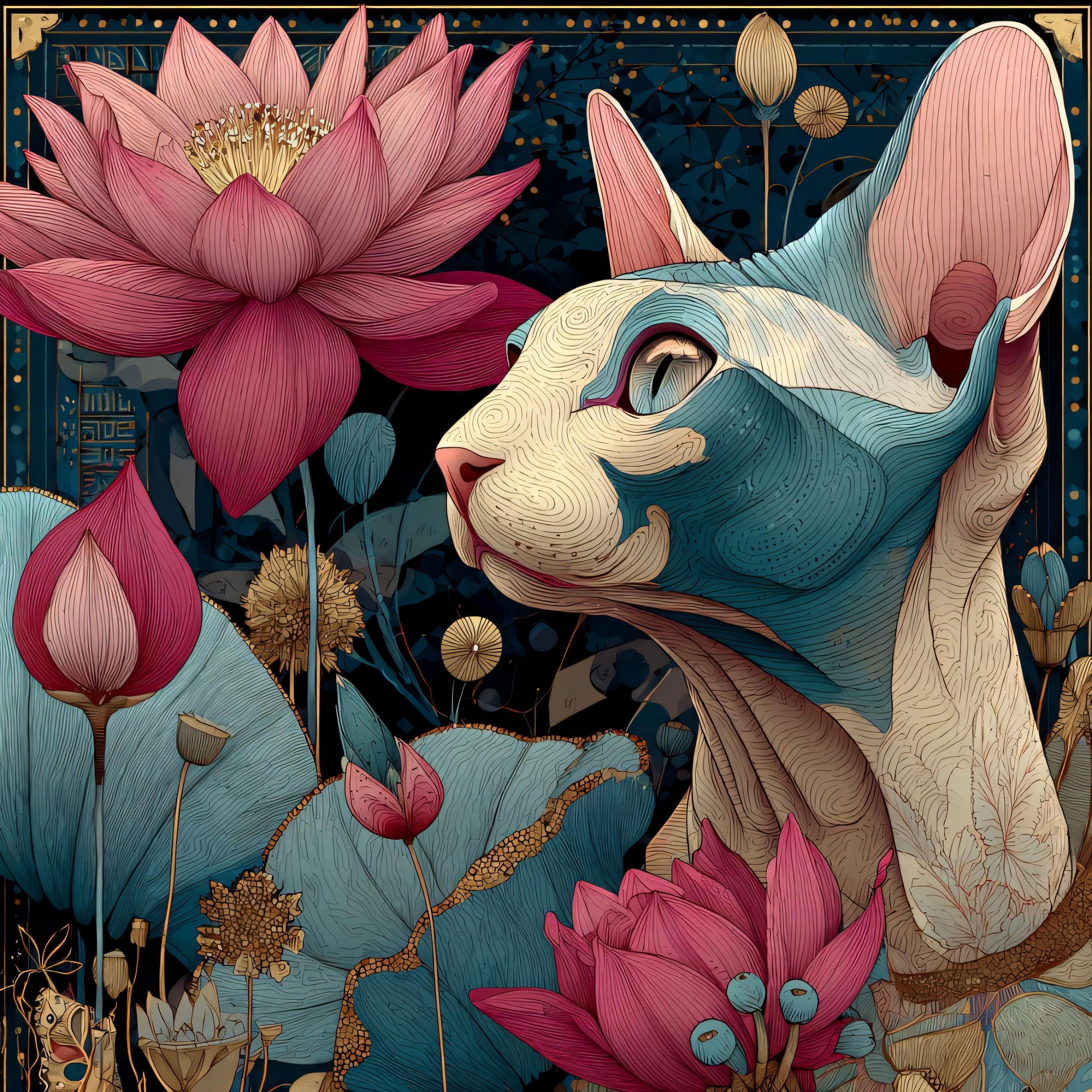 Grace, curiosity, and quiet strength—captured in one stunning design 🌸🐱