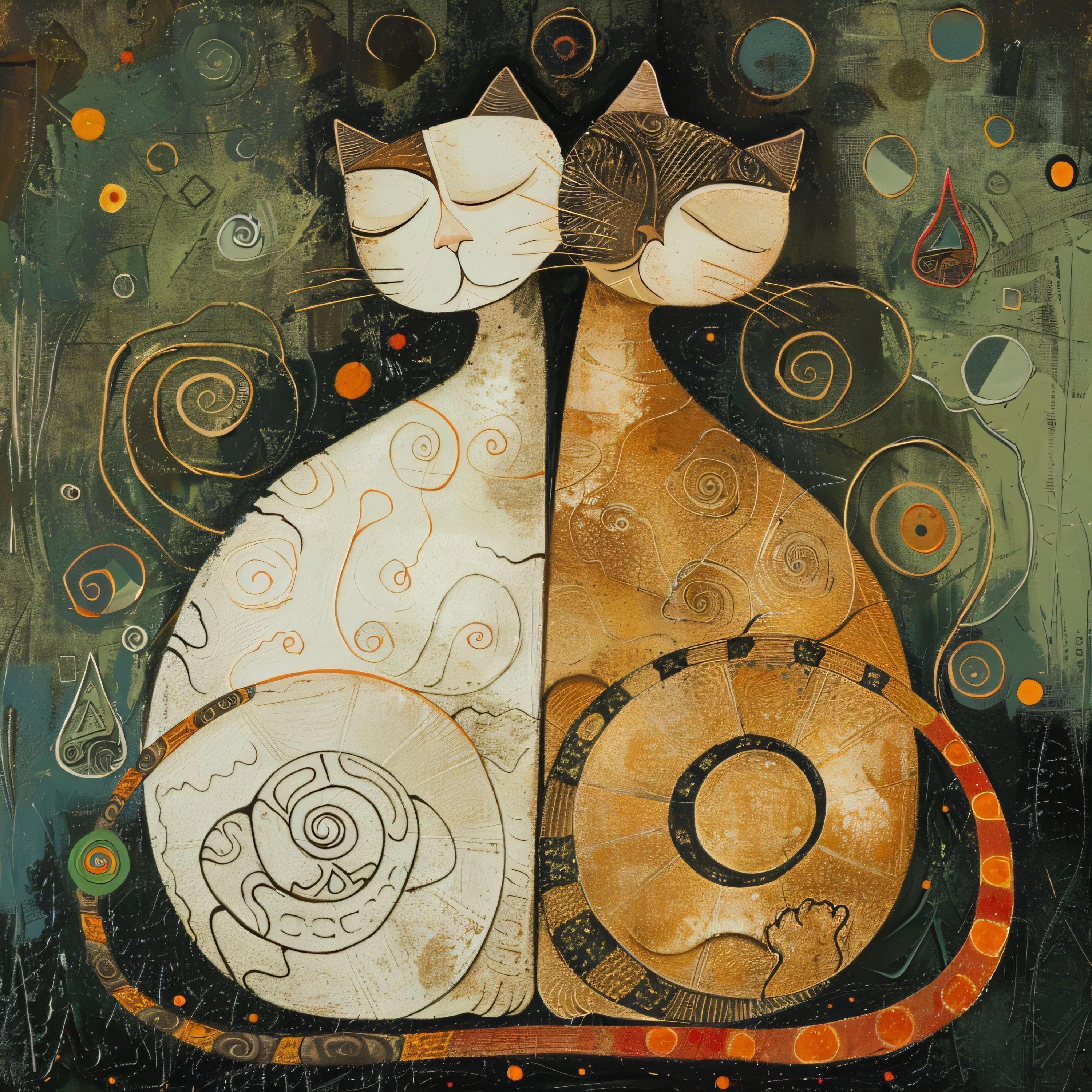 🐱🐱 Two cats illustrated in a serene, symbolic style
