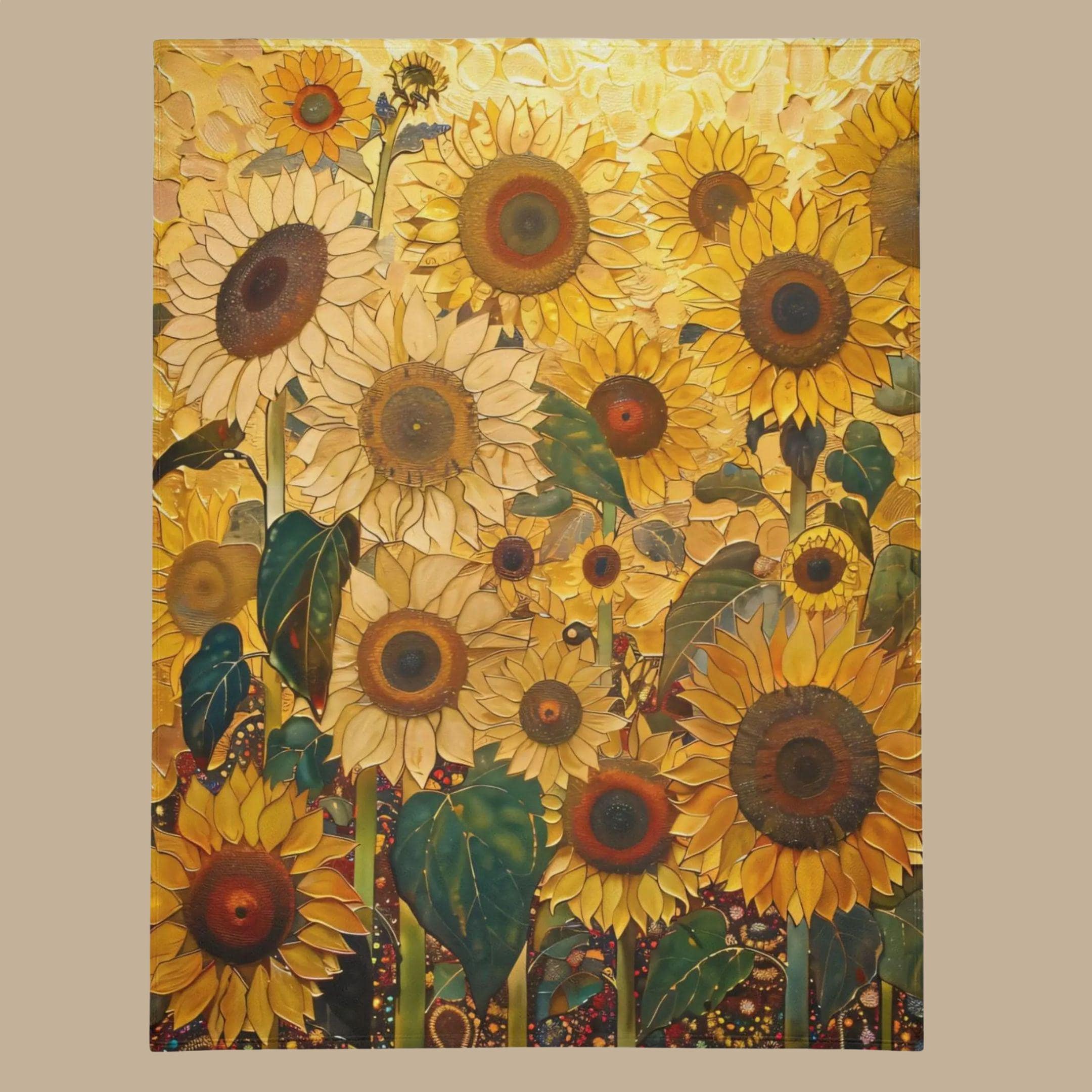 Bring warmth, comfort, and pure golden happiness into your home with this sunflower flannel throw blanket, featuring a lush painterly field of sunflowers in rich yellows, warm golds, and deep green leaves. This design feels like late-summer sunshine meeting cozy autumn evenings.