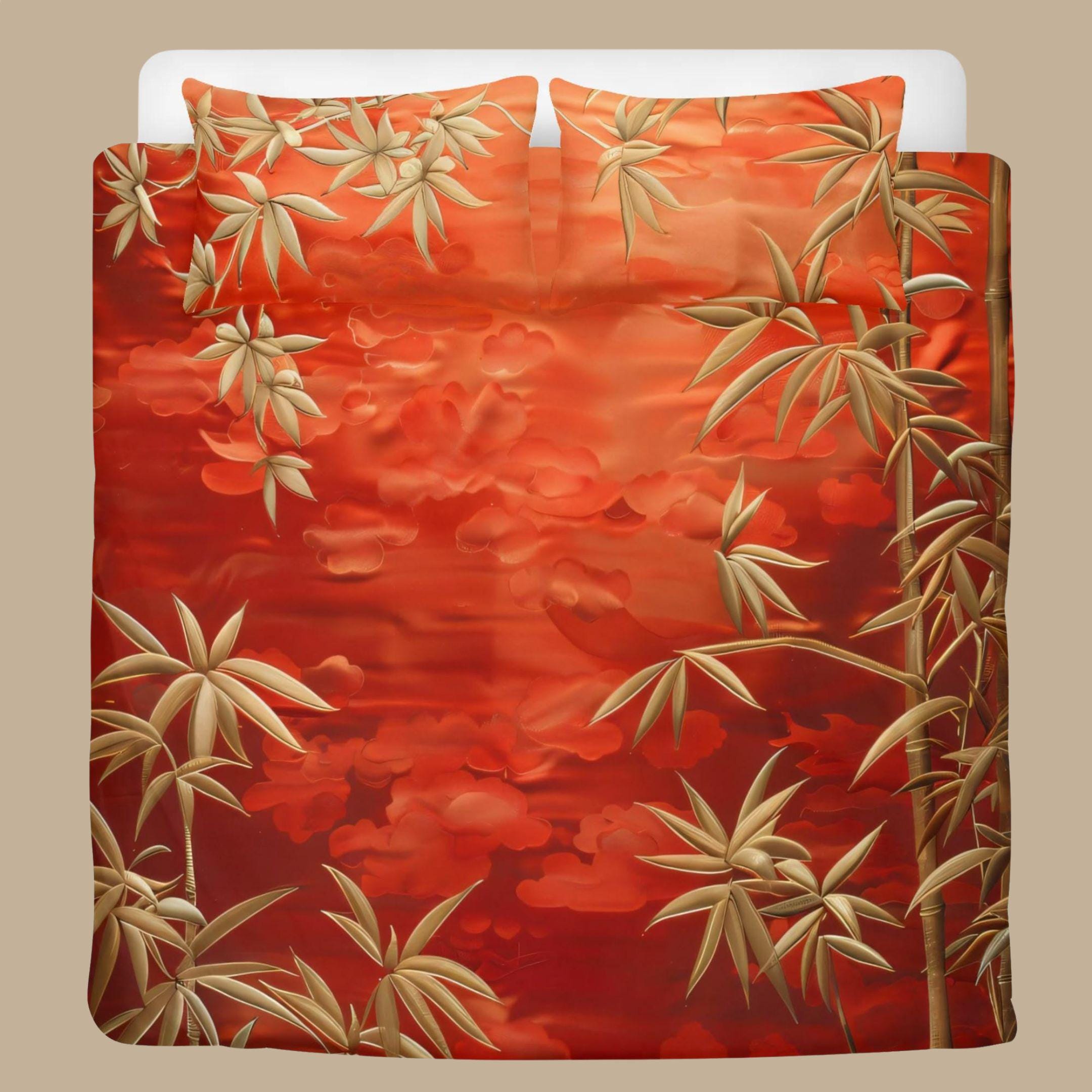 Bring bold serenity into your bedroom with this stunning Red Bamboo Duvet Cover Set, inspired by classic Asian botanical art and modern luxury design. The rich red background paired with flowing golden bamboo leaves creates a calming yet dramatic atmosphere—perfect for transforming your space into a peaceful retreat.