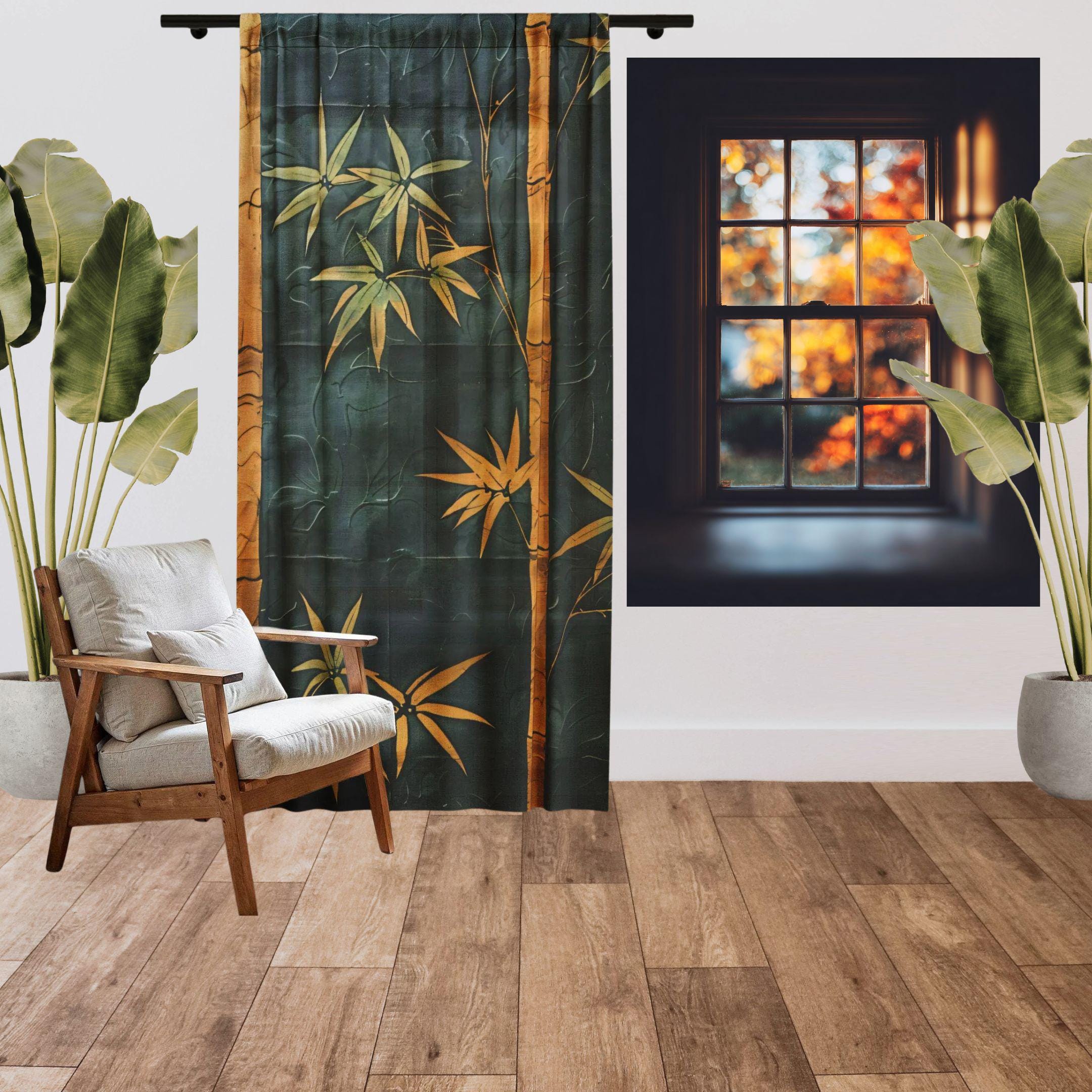 Bring gentle light and serene style into your space with this Bamboo Forest Sheer Curtain. Designed to coordinate beautifully with our bamboo forest bedding and throws, this sheer panel features elegant green tones with warm golden bamboo accents that feel grounded, peaceful, and timeless.