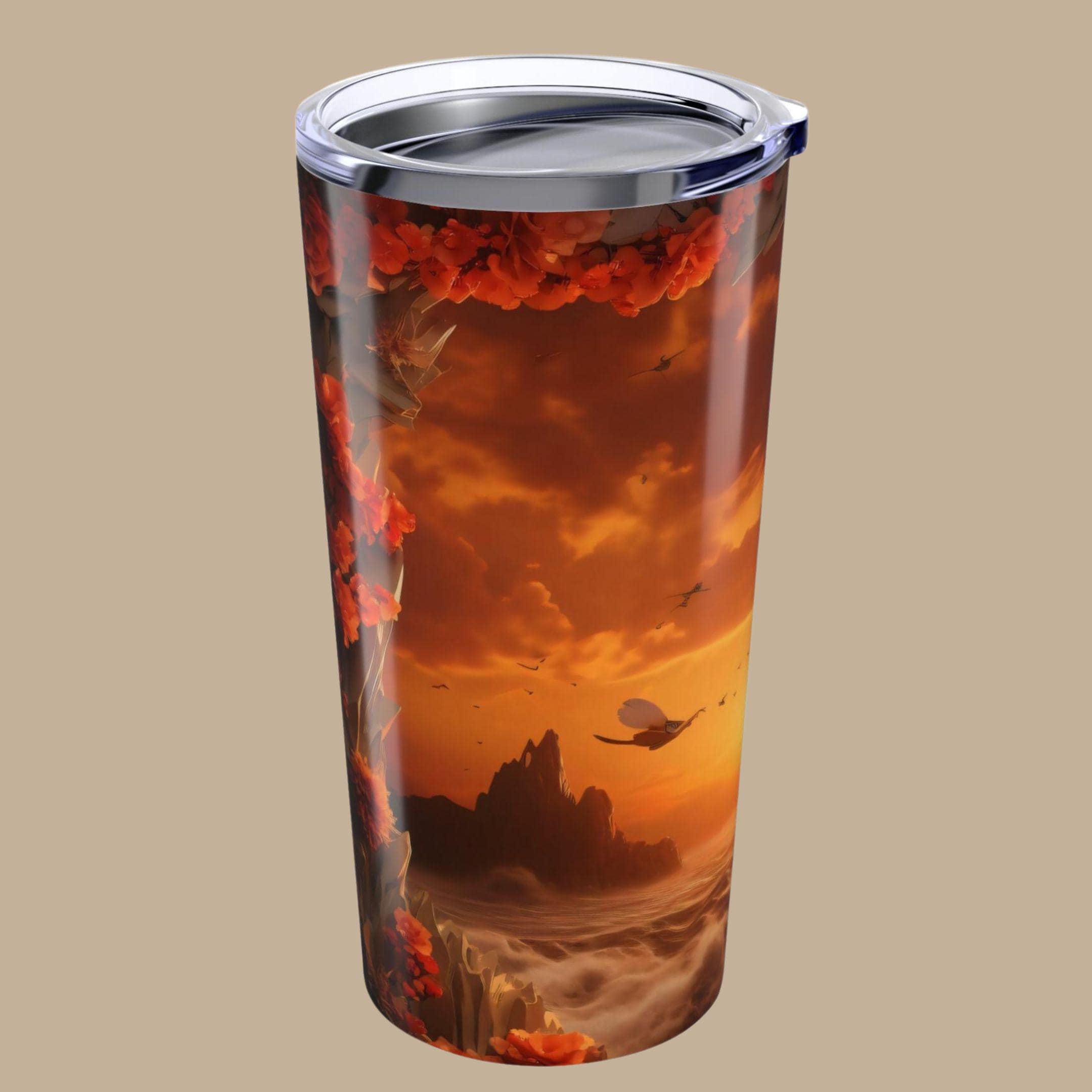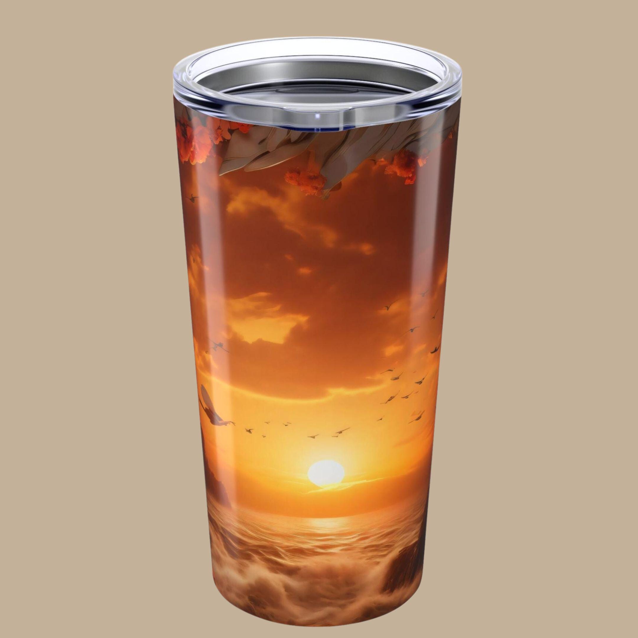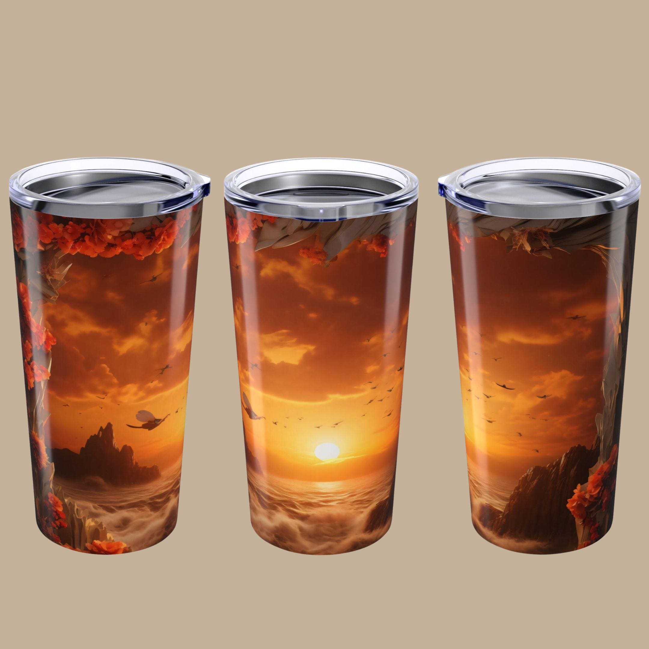 Carry a pocket of sunset with you. This 20oz tumbler wraps a warm, painterly sunset and drifting clouds around a slim, vacuum-insulated steel body. Mornings feel softer as steam rises; afternoons stay cool and bright. The clear push-on lid with a snug rubber gasket keeps spills at bay during commutes, hikes, or slow porch breaks. Its glossy finish makes the colors pop and the stainless-steel core resists rust and staining, so the scene stays vivid through everyday use and the occasional dishwasher run. It sits comfortably in cup holders and hands alike — a small, steady reminder to breathe and watch the sky.