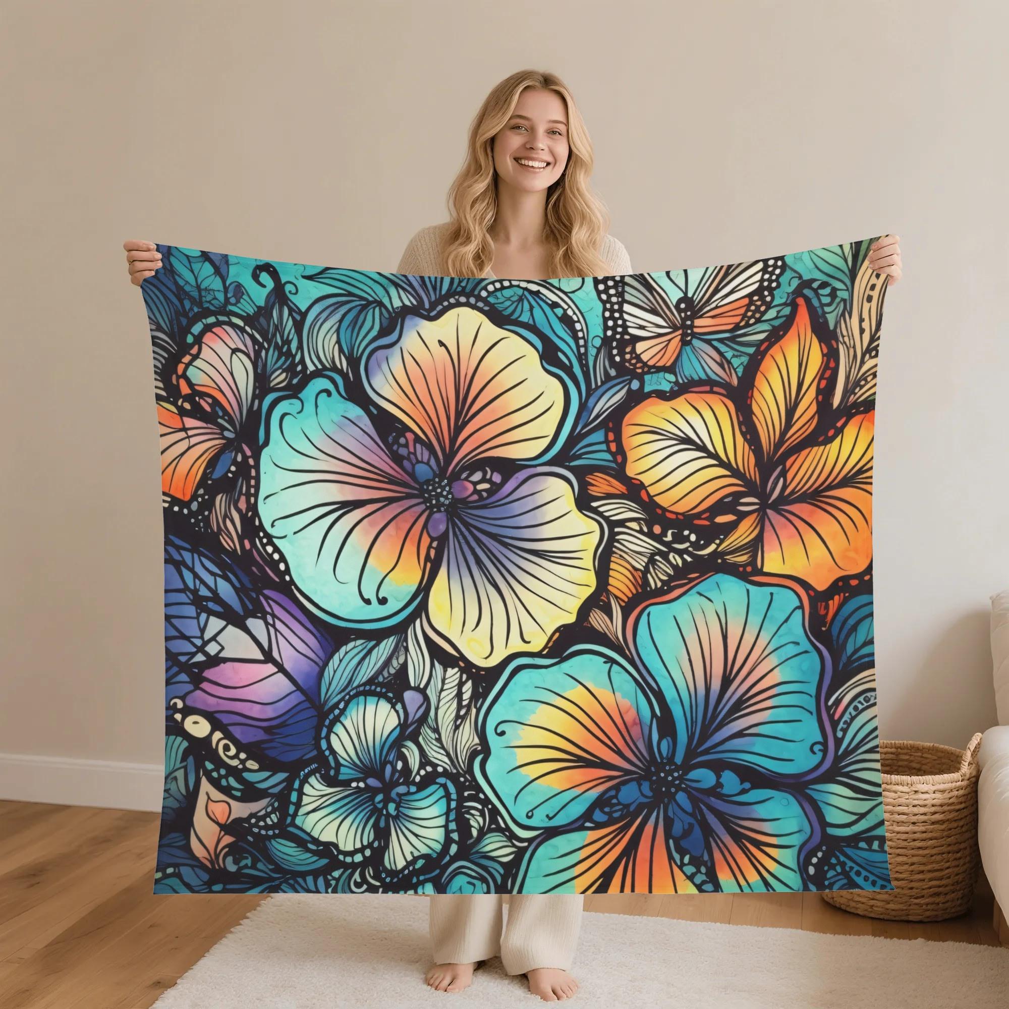 Wrap yourself in warmth, color, and creativity with this vibrant floral flannel blanket, designed to bring joyful energy and artistic beauty into your space. Featuring a bold, painterly botanical design with rich teal, golden yellow, coral, and indigo tones, this blanket is both a cozy essential and a statement piece.