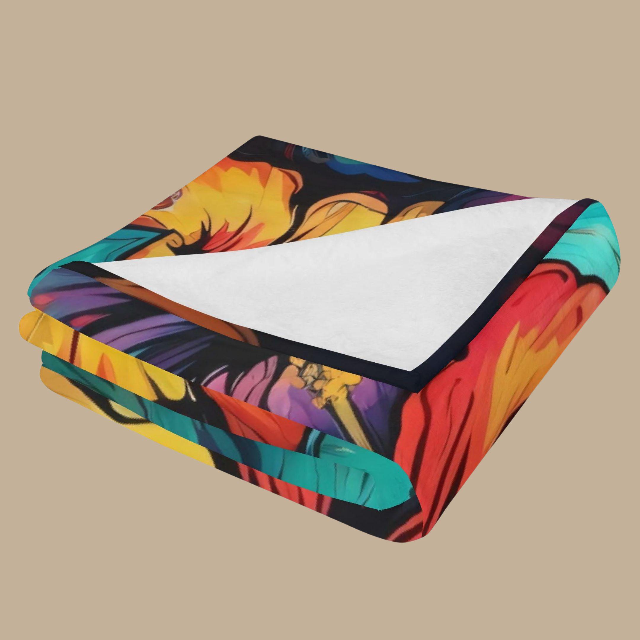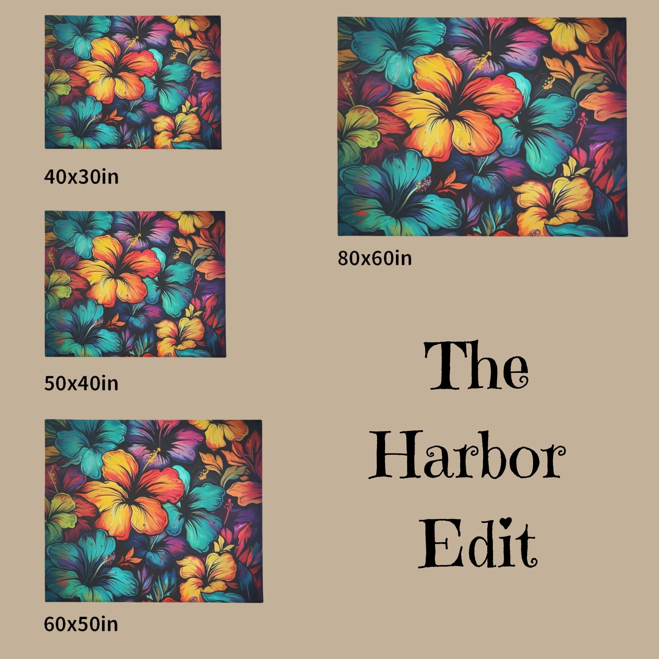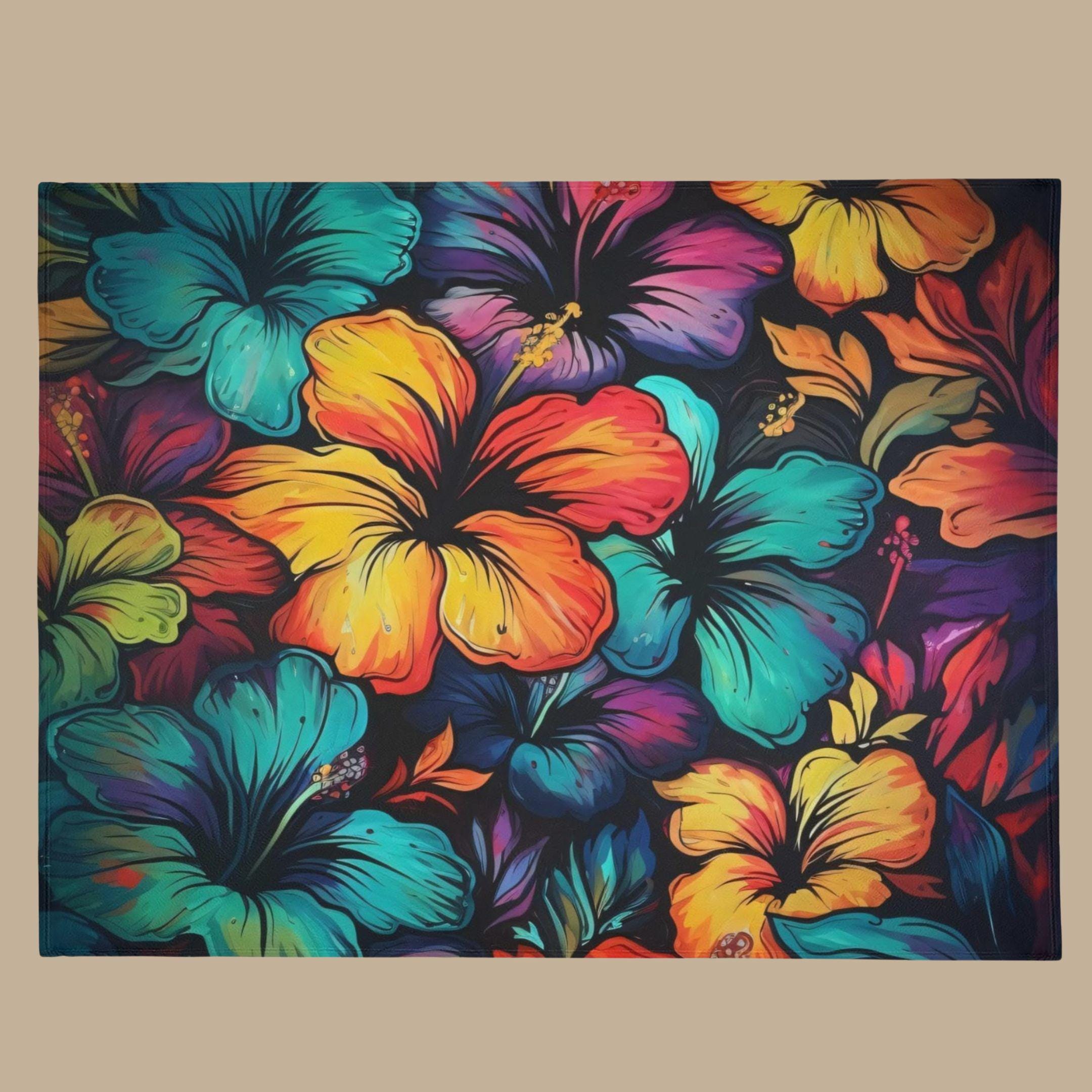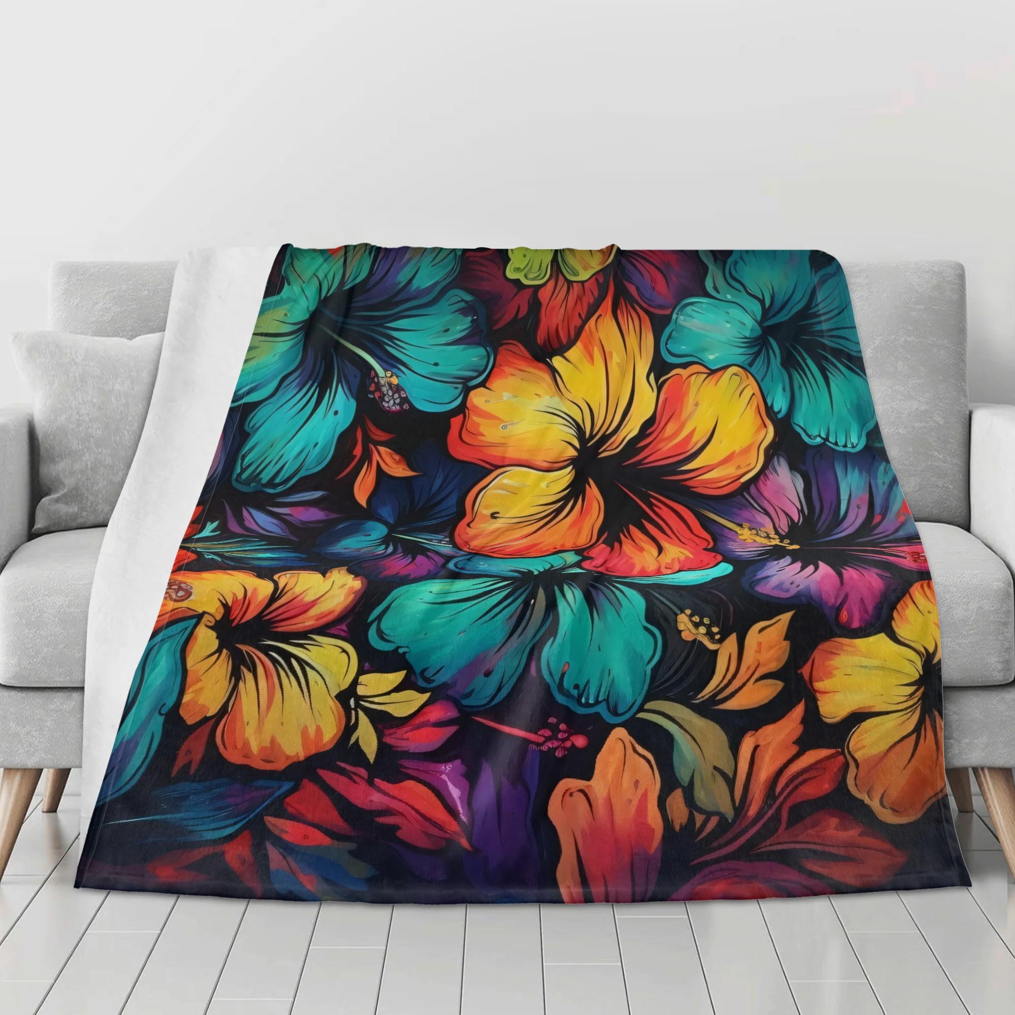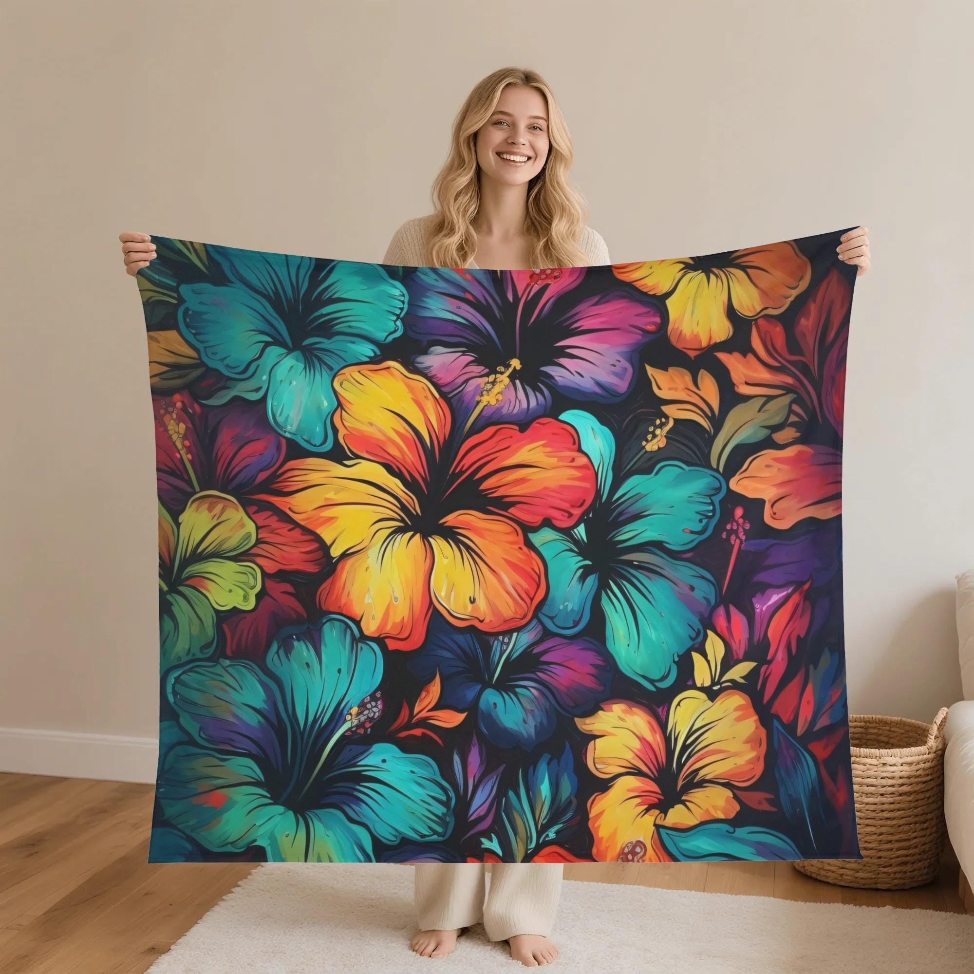 Turn everyday comfort into a work of art with this bold floral flannel throw blanket, featuring richly saturated hibiscus-style blooms in deep teal, fiery gold, coral, and midnight tones. This design is dramatic, cozy, and full of personality — perfect for adding warmth and color to your living space.