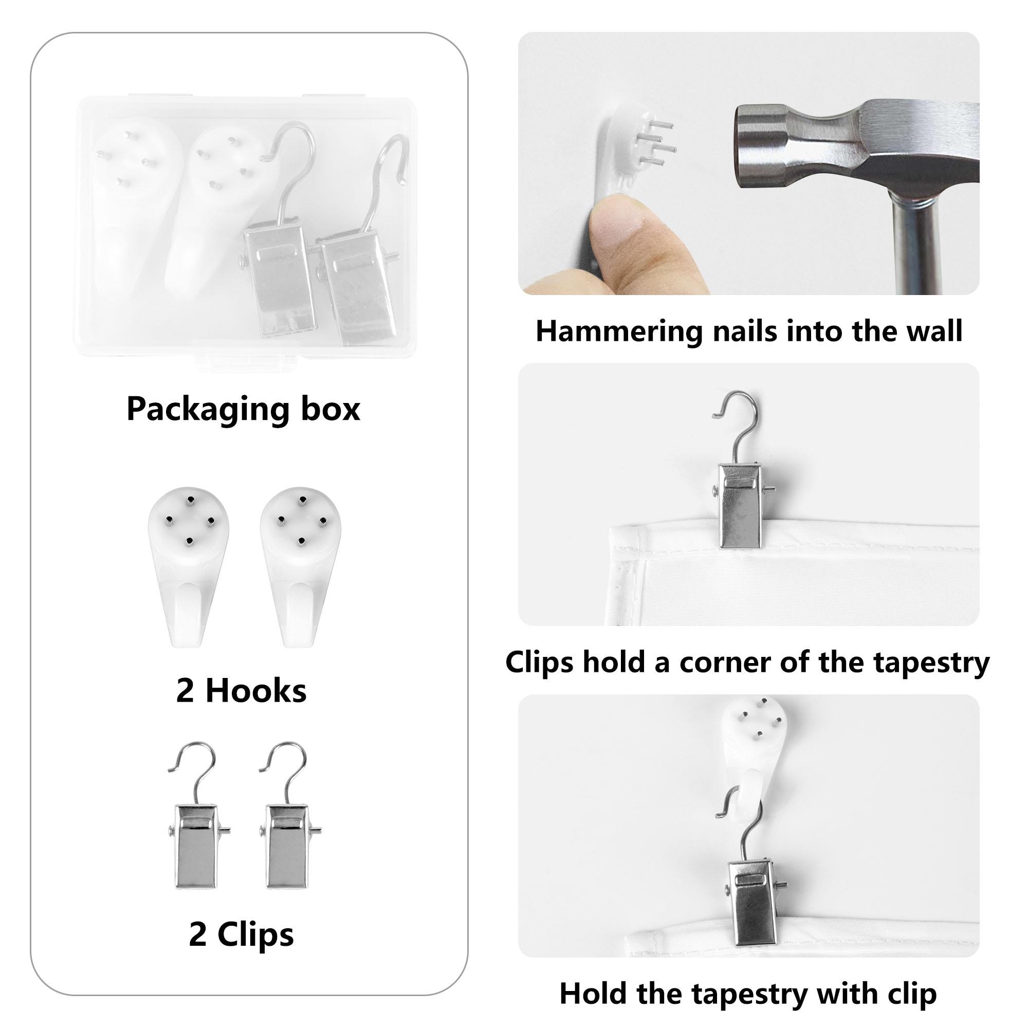 Each tapestry comes with a simple hanging kit: