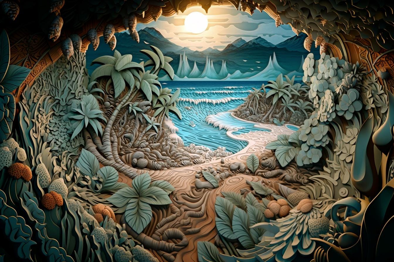 🌊 Peaceful ocean and tropical cove artwork