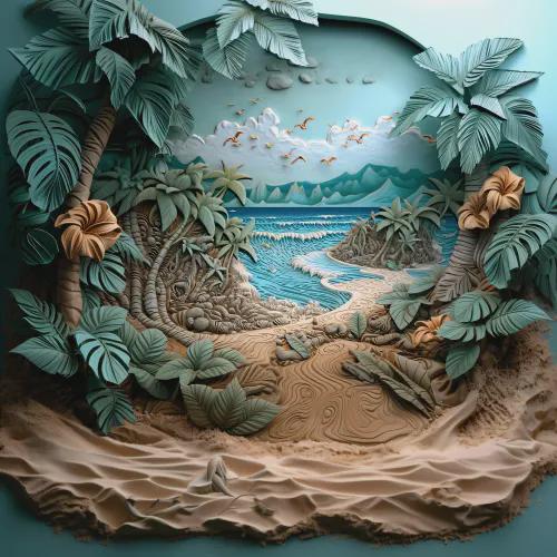 🌊 Stunning coastal artwork with layered ocean, jungle, and sunset details